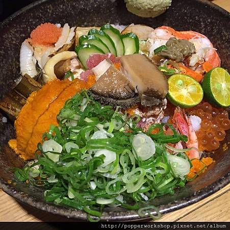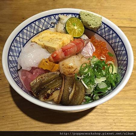 自從日本回來後,還是對生魚片飯念念不忘,燦笑... 結果又跑去瞞著爹了,瞞著爹不用多介紹,香港旅遊書和雜誌常常推薦的,瞞著爹位於微風廣場正後方,是一間老房子,店內的裝潢很有日式風格,就像日本食堂一樣,分一樓跟二樓,上菜速度無敵快,先點餐付款然後再進去用餐區,這次點了限定究極生魚片丼 (1.5人份量)、特選綜合海鮮丼、玉子燒、蛤蜊味噌湯、明太子茶碗蒸 (點太多了~~), 很多朋友說其實點了特選綜合海鮮丼已經有點撐,十種生魚片的丼飯很豐盛:海膽、玉子燒、鮪魚、軟絲、胭脂蝦、干貝、星鰻、鮭魚卵、鮭魚、比目魚,看著澎湃的生魚片,繽紛多彩的顏色,食材很新鮮,好激動呢,朋友點的【究極生魚片丼】很霸氣,全部海鮮都有,還有松葉蟹腳、鮑魚、蟹膏,生魚片很新鮮肥美,流口水了,店員說究極生魚片丼是1.5人的份量,足夠兩個人吃,他們家的醋飯味道剛剛好,不會太酸,芥末是現磨的,很嗆辣夠味,喜歡... 吃完丼飯根本不用點小菜了,加點的小菜中,玉子燒最~好~吃,厚厚的一片,香香甜甜,很犯規,蛤蜊味噌湯同樣鮮甜好喝,蛤蜊很多呢,很滿足的一頓飯。